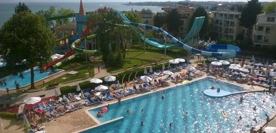 - dupa îndelungi căutari de hoteluri aproape de plajă cu nisip, sau chiar pe plajă, în toate staţiunile bulgăreşti, focusul meu s-a îndreptat către hoteluri care să aibă şi parc acvatic şi chiar all inclusive.