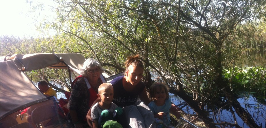 După (încă) un drum cu barca, am luat al doilea mijloc de transport, căruța, care ne-a dus la pădurea Letea. Copiii în extaz!