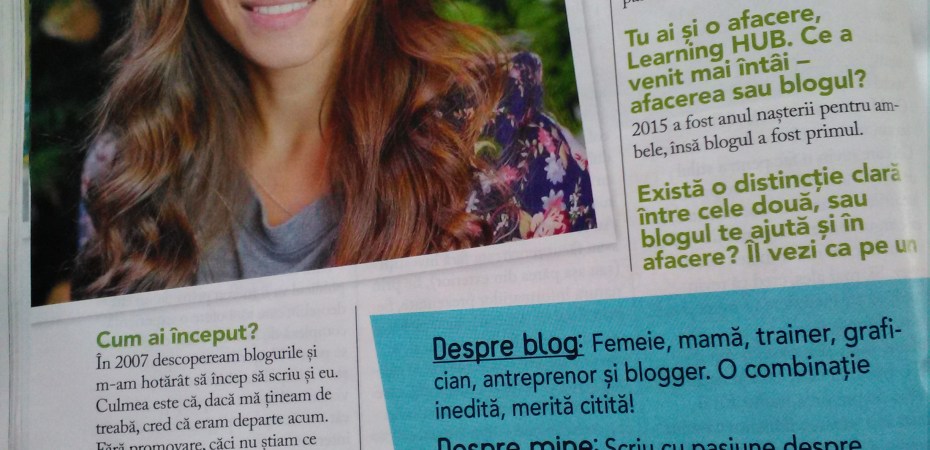 martie 1, 2017 Lucia Radu Vrei sã-ți faci blog? Revista Mami de martie te așteaptă cu tips and tricks de la 3 mame bloggerite 🙂 În martie vă țin companie la cafea din revistă! Partajează asta:Tweet Partajează prin WhatsApp(Se deschide într-o fereastră nouă) WhatsApp Apreciază Încarc... Related