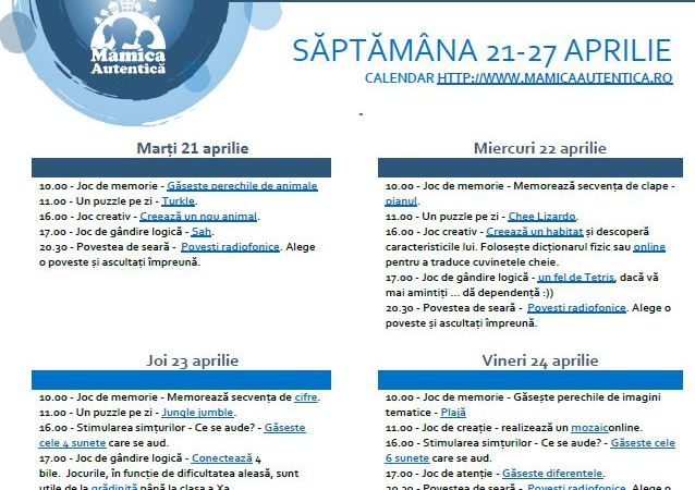 Calendar de activități 21-27 aprilie #Stăm Acasă