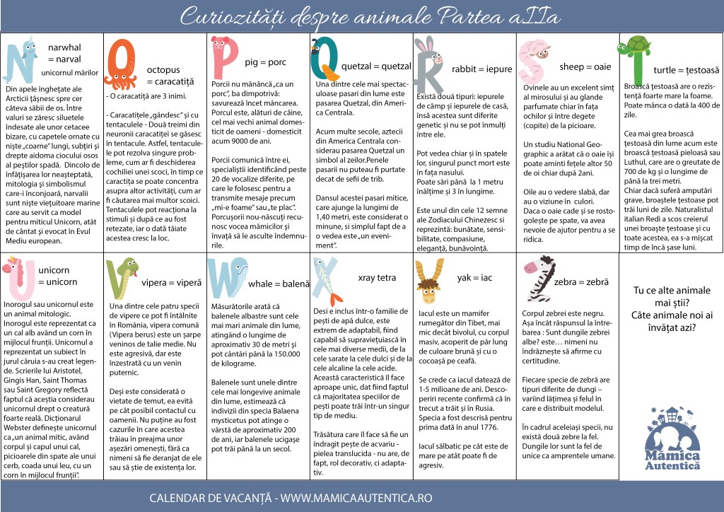Am revenit cu partea a IIa a calendarului de vacanță cu animale 🙂