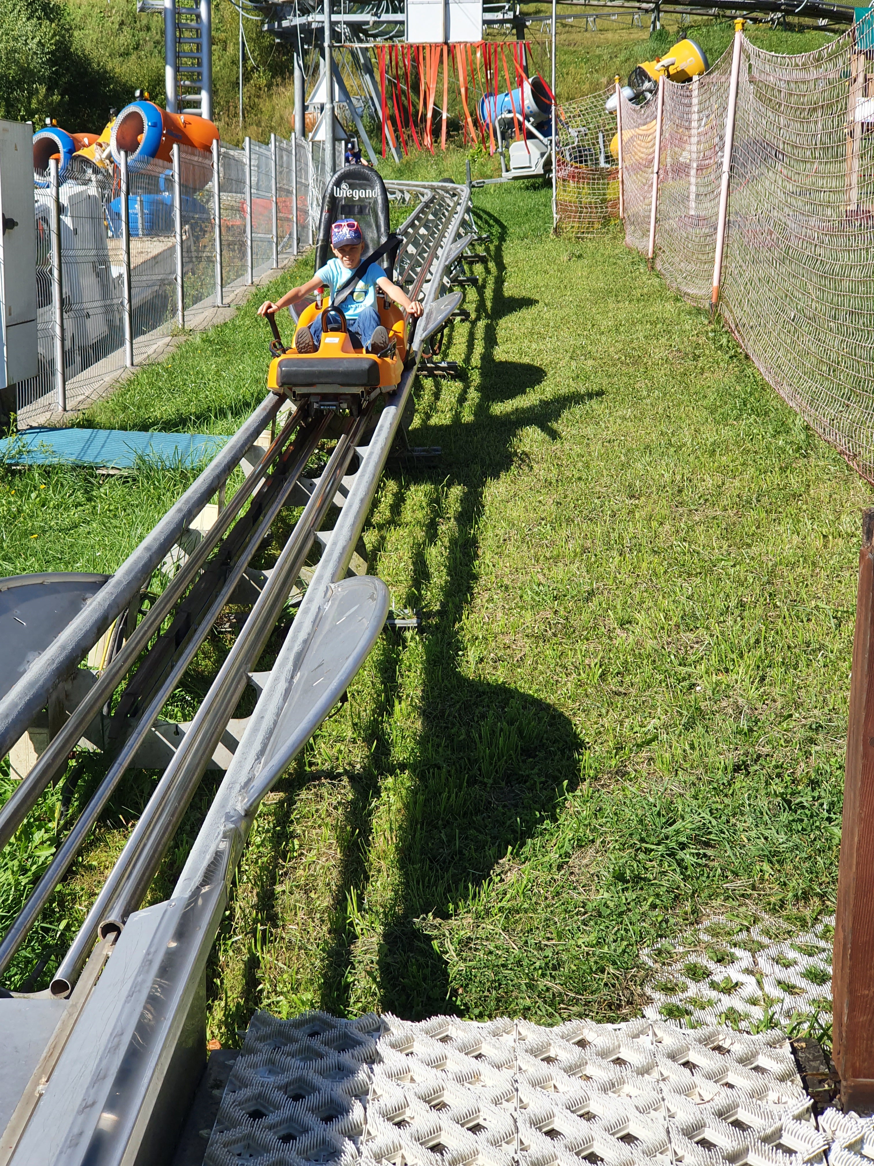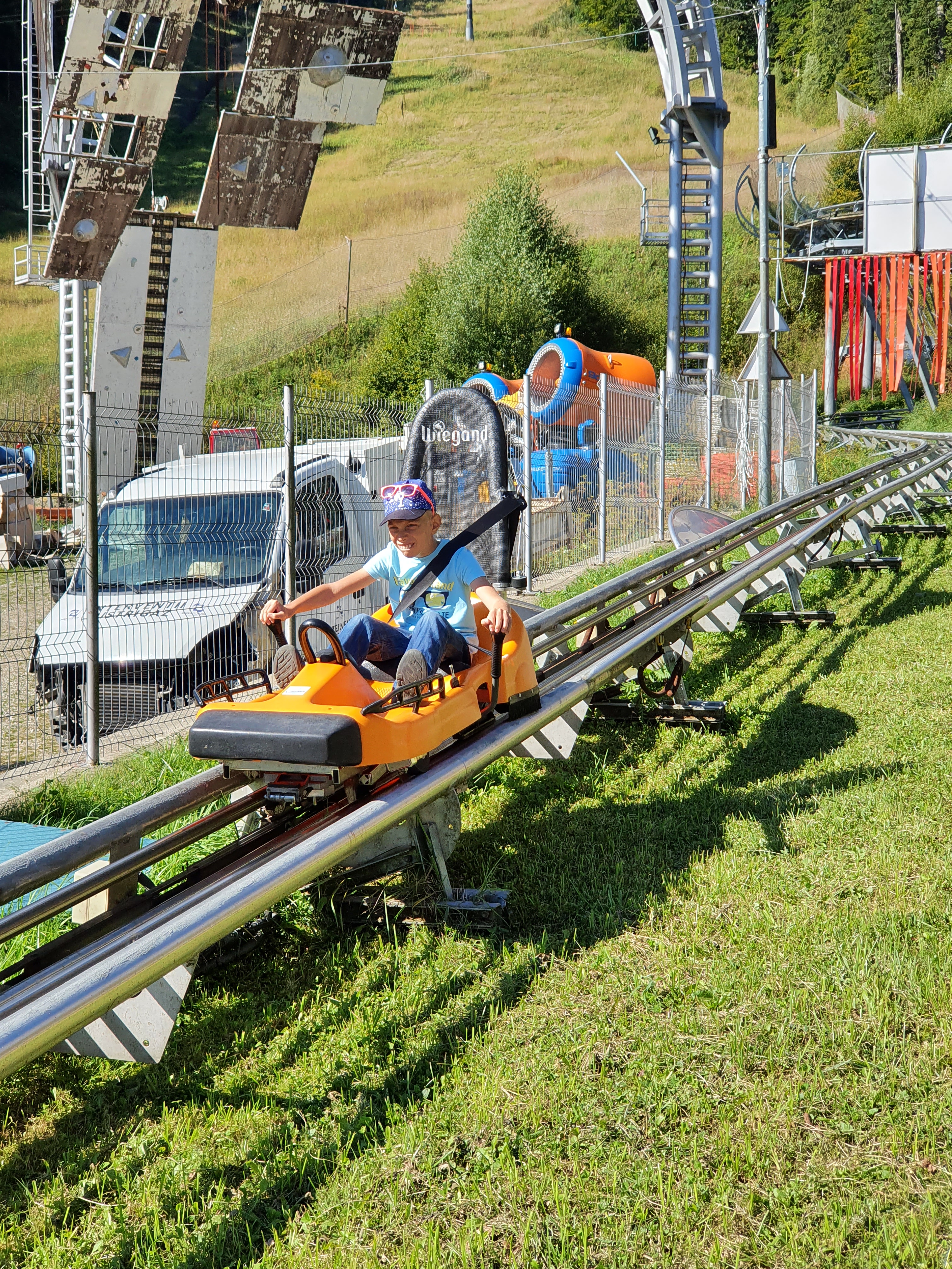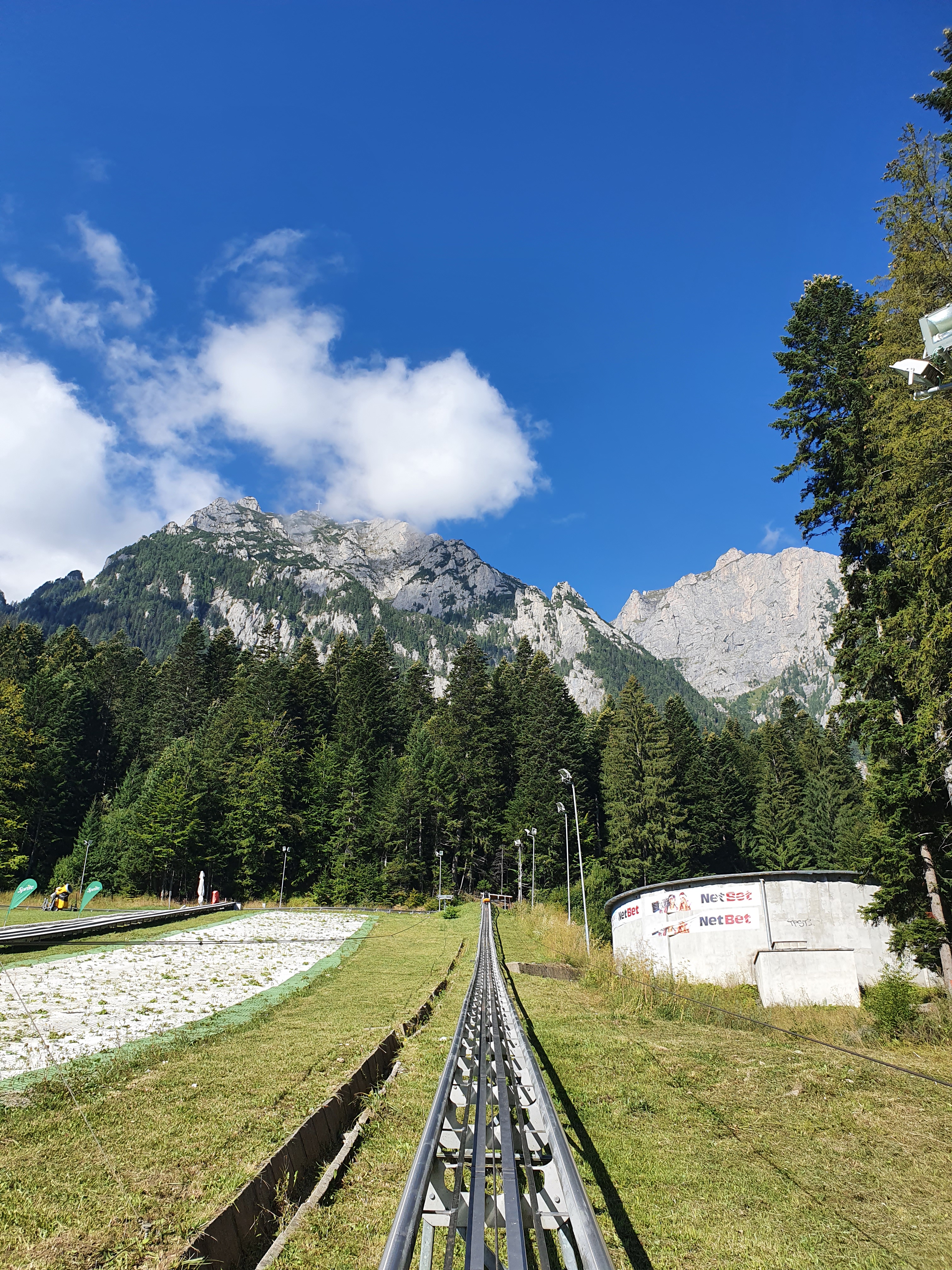 Pe munte noi am mai mers câte un pic, acum însă voiam să testăm Fun Park Kalinderu. Eu am testat în Kaprun o sanie de acest gen și tare m-am bucurat să văd în România o instalație similară. Pe internet puține informații și nu chiar ce e la fața locului deci am hotărât să vă povestim și vouă cum e pe acolo și, de ce nu, să vă dăm o idee de distracție înainte să înceapă școala.