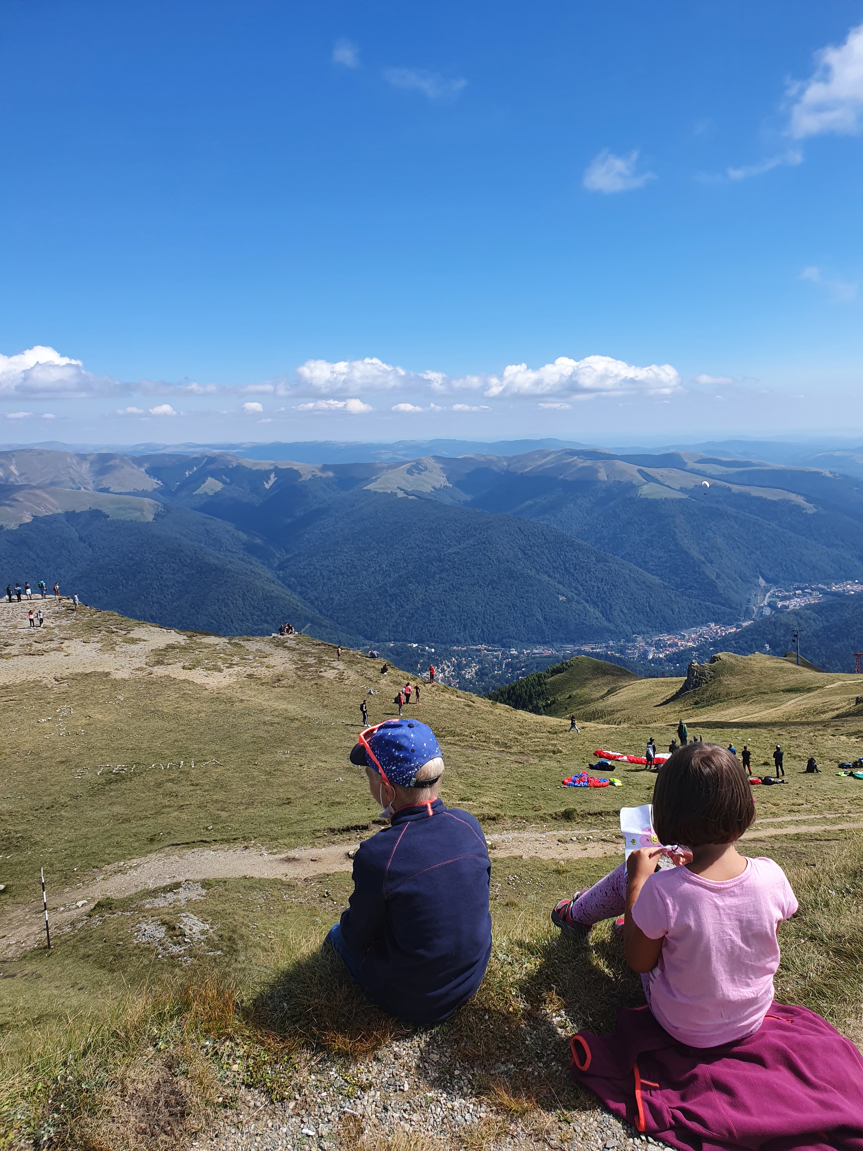 Nu am avut chef de trasee sau de vreo mișcare în zonă, dar i-am lăsat să urce și să coboare pe munte sub ochii mei și au zburdat ca niște capre negre (sunt câteva diferențe de nivel pe platou). Data viitoare iau și dotări de picnic, jur că ei ar sta acolo toată ziua. Poate aș putea și un #workfromanywhere :)) so #workfromhome unde „home is where the heart is”, internet pe telefon aveam bine.
