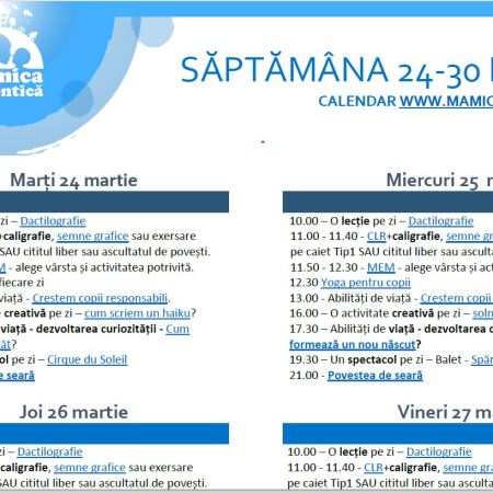Calendar de activități 24-30 martie #StămAcasă