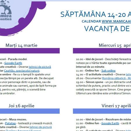 Calendar de vacanță 14-20 aprilie #StămAcasă de Paște