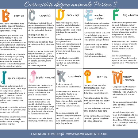 Calendar de vacanță – curiozități despre animale partea I #StămAcasă