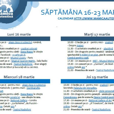 Calendar de activități 16-23 martie #StămAcasă